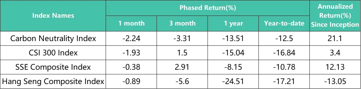 Performance of the Carbon Neutrality Index (Data as of 2022.08.29)